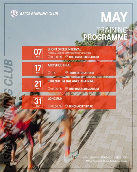 ตารางกิจกรรมเดือนพฤษภาคม ลงทะเบียน ที่นี่ https://bit.ly/3HZAyXc ✔️ SLOT AVALABLE ✔️ Short Speed Interval with Mangkorn Pongsakorn วันที่ 7 พฤษภาคม.